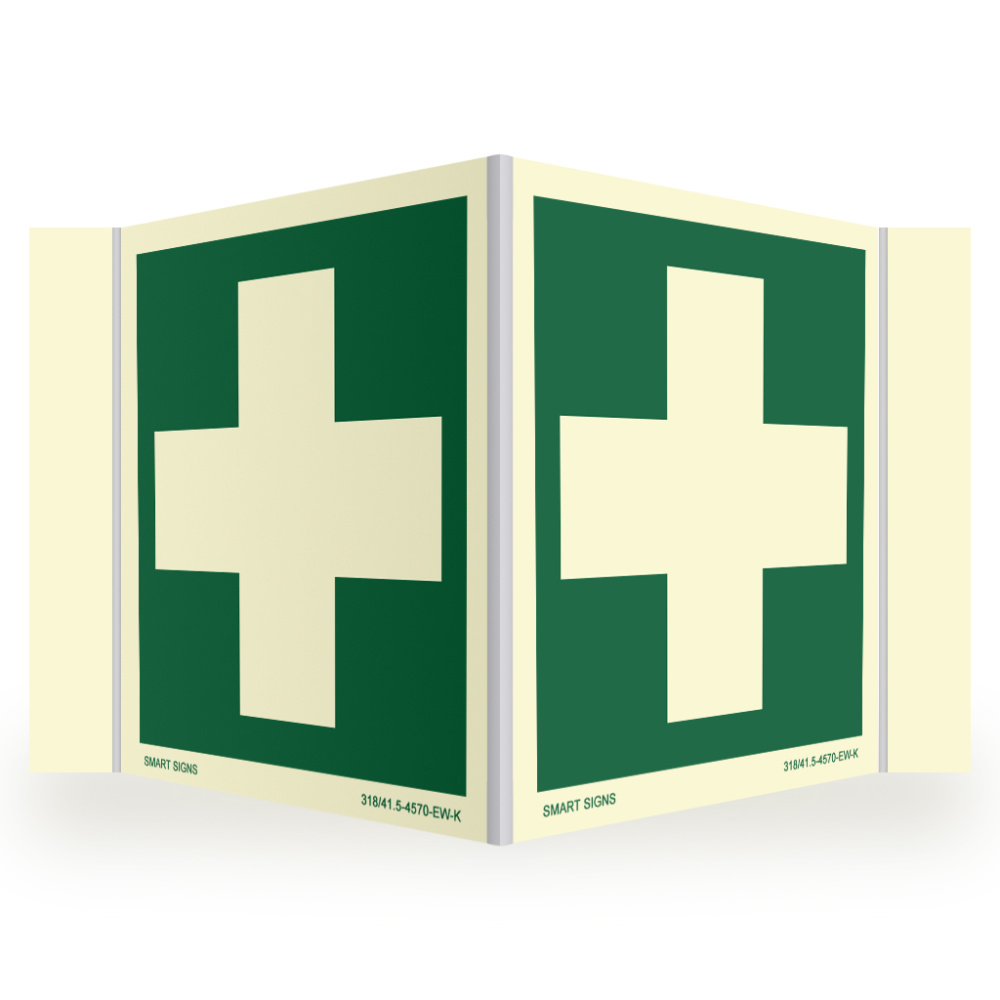Etterlysende plogskilt med symbol for Førstehjelpsutstyr.